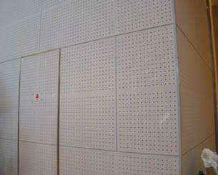 穿孔吸音板完美的結(jié)合了現(xiàn)代主義建筑理念所具有的“綠色環(huán)保、經(jīng)久耐用、美觀、吸音性強(qiáng)、隔音效果好、安裝使用方便”等優(yōu)點(diǎn). 穿孔吸音板廣泛適用于演播廳、影劇院、多功能廳、會(huì)議室、音樂廳、教室等一些公共場(chǎng)所。